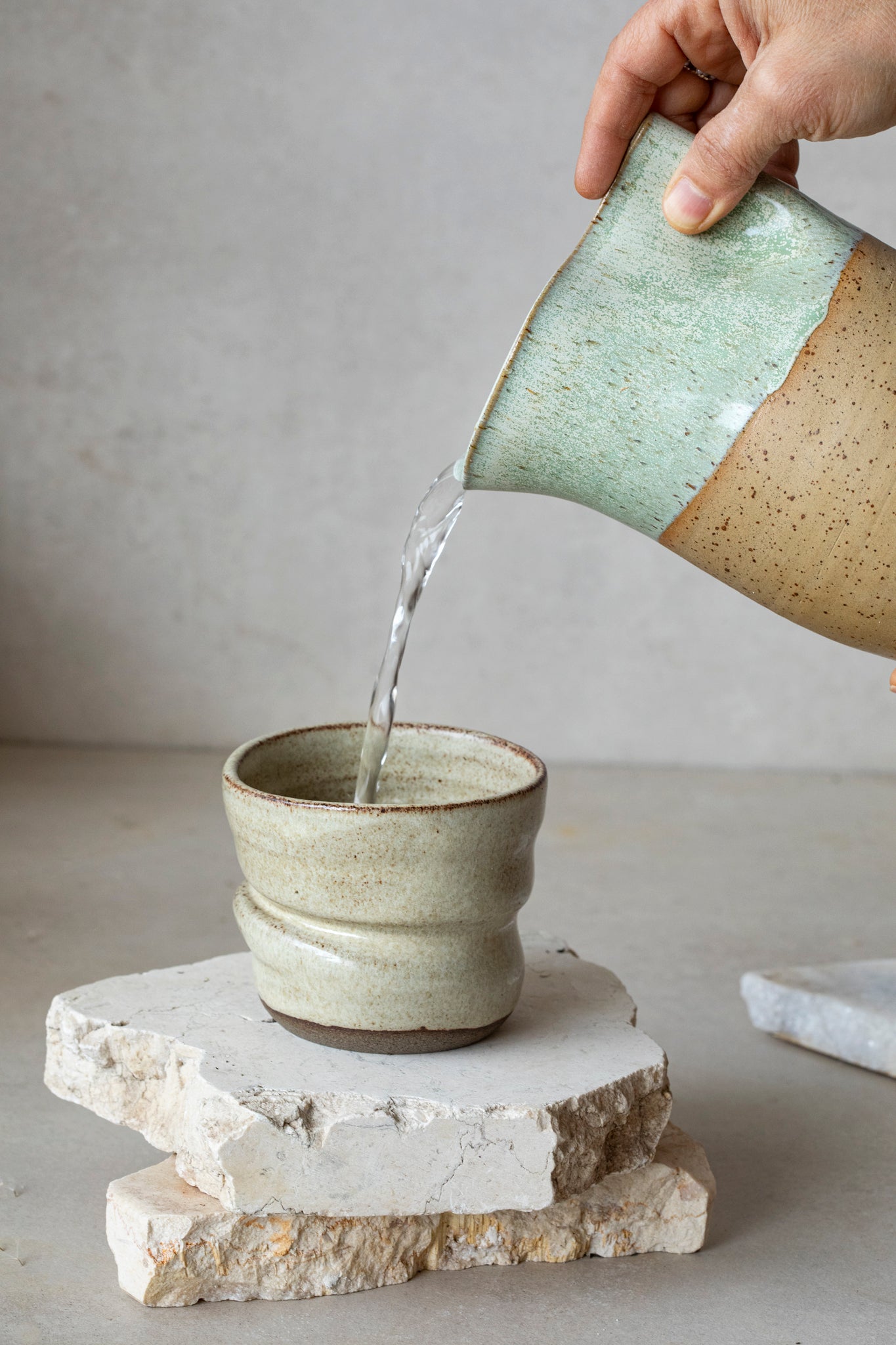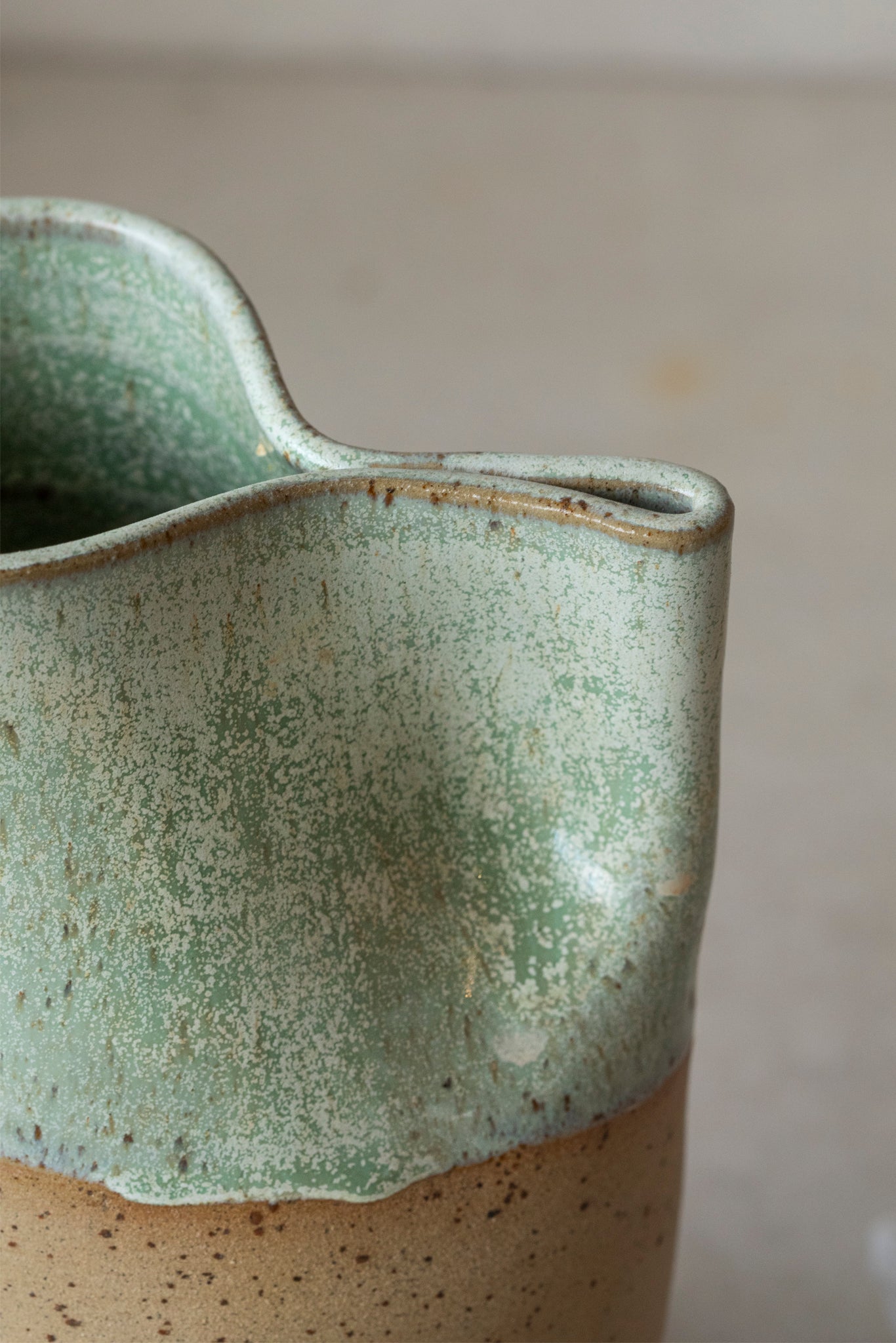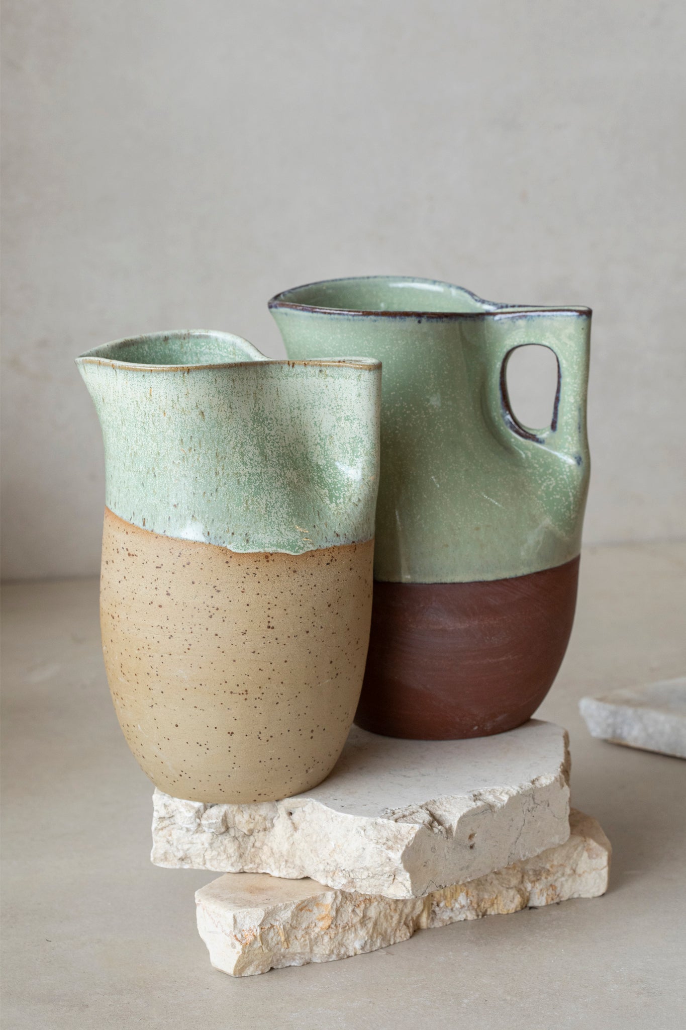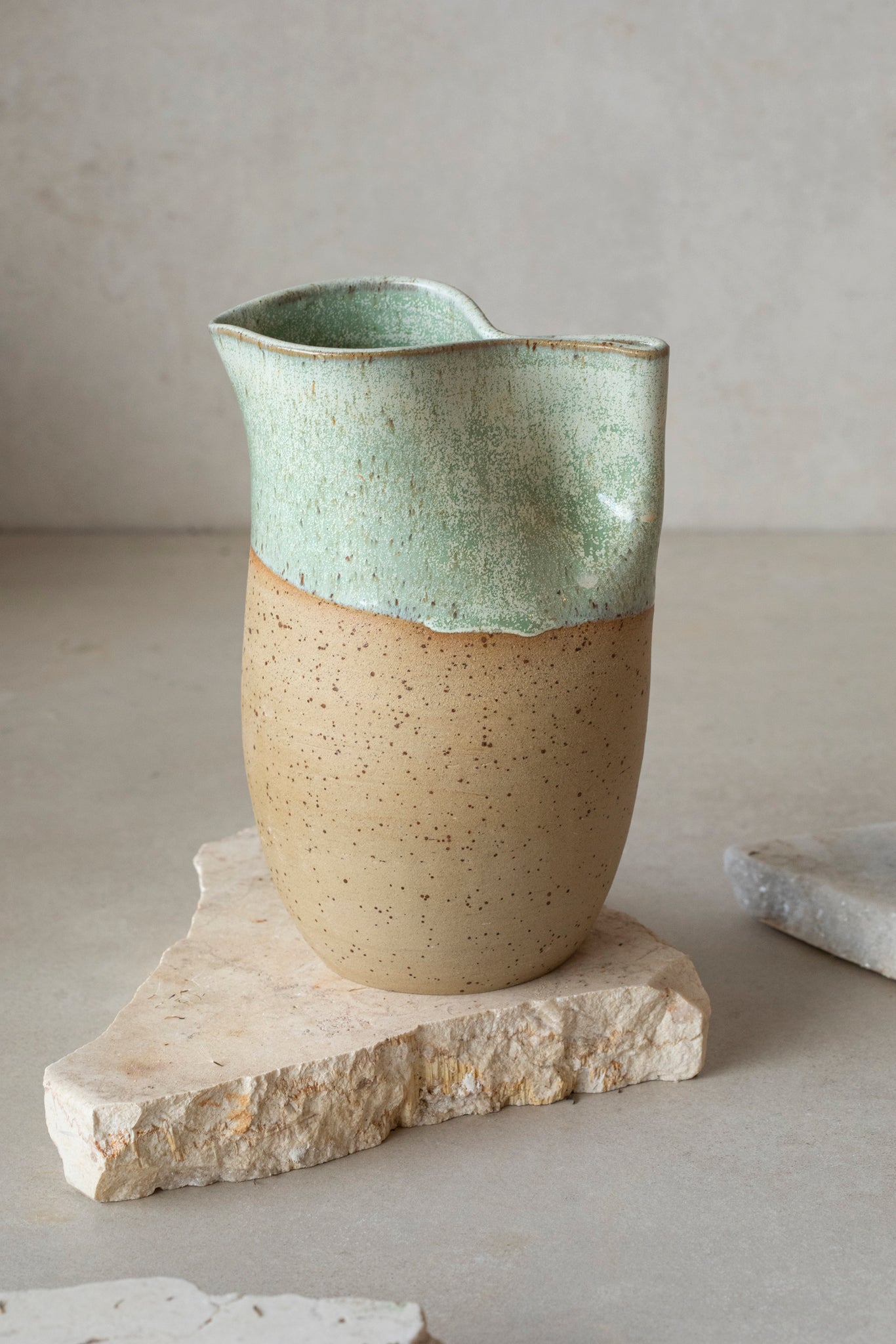 קנקן זה נעשתה בעבודת יד על אובניים בשילוב עם טכניקת פיסול ידנית